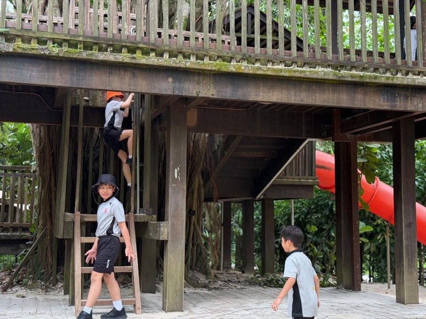 One of the highlights was the Treehouse Playground. Some students were brave and challenged themselves to climb up the steps and ladder. After that, they had lots of fun sliding down the long slides. Everyone smiled and laughed.