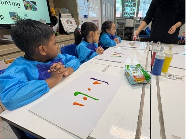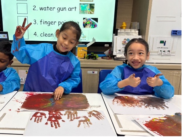 Art Jam was thoughtfully structured into three segments: hand painting, water gun art, and finger painting. These activities allowed students to explore different ways of mark-making, with each artwork reflecting their creativity and individuality.