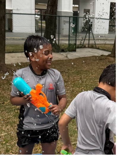 After eagerly anticipating it throughout the afternoon, the students finally enjoyed water play after recess. They had demonstrated positive behaviour by listening attentively, waiting patiently for their turn, and following class rules. As a reward, they were given free play time, which also provided opportunities to interact and play with friends from other classes. The wide smiles on their faces clearly showed that water play was the highlight of the day.